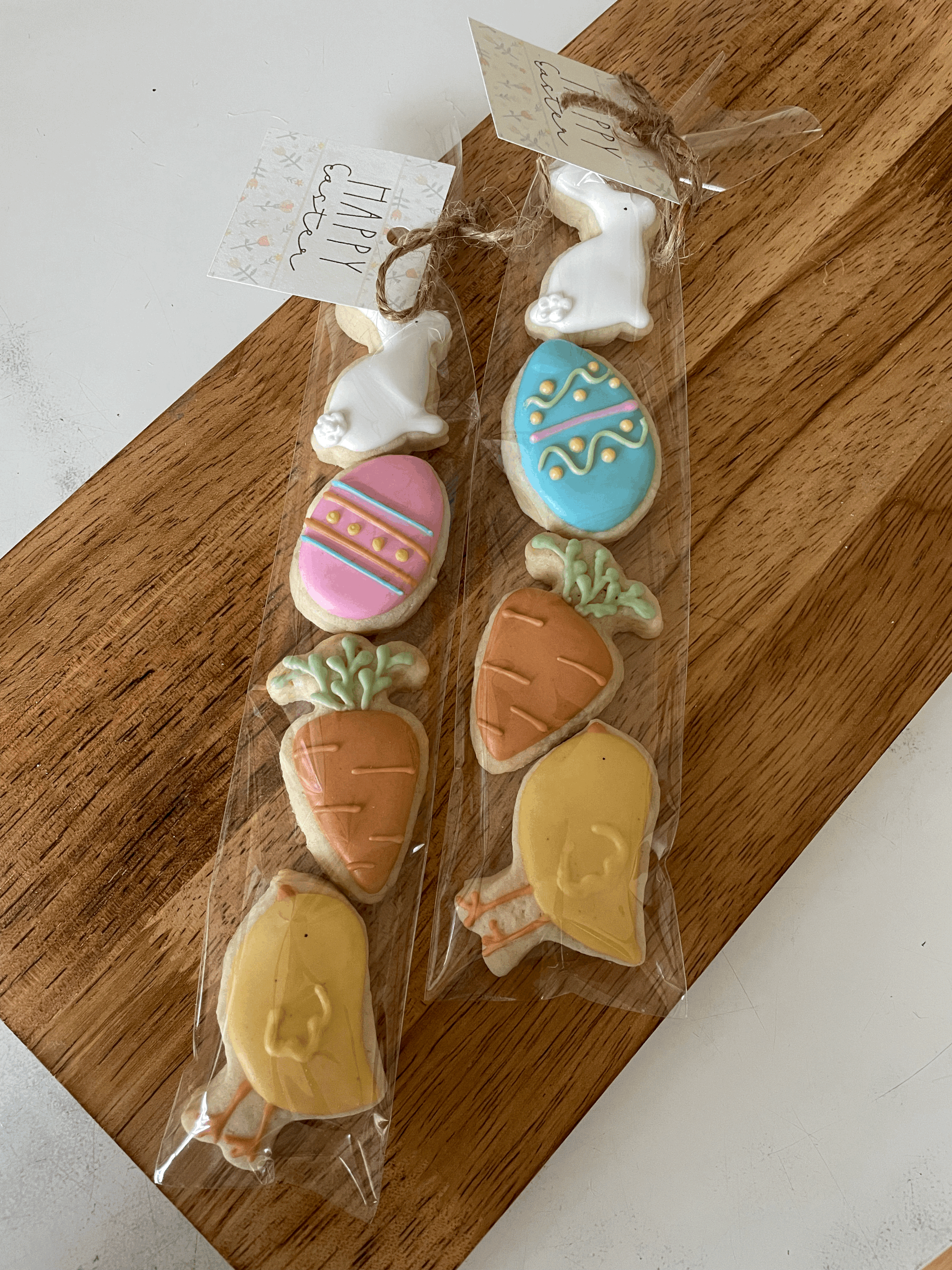 These mini sleeves will have 4 decorated mini cookies tied with a cute bow and tag.