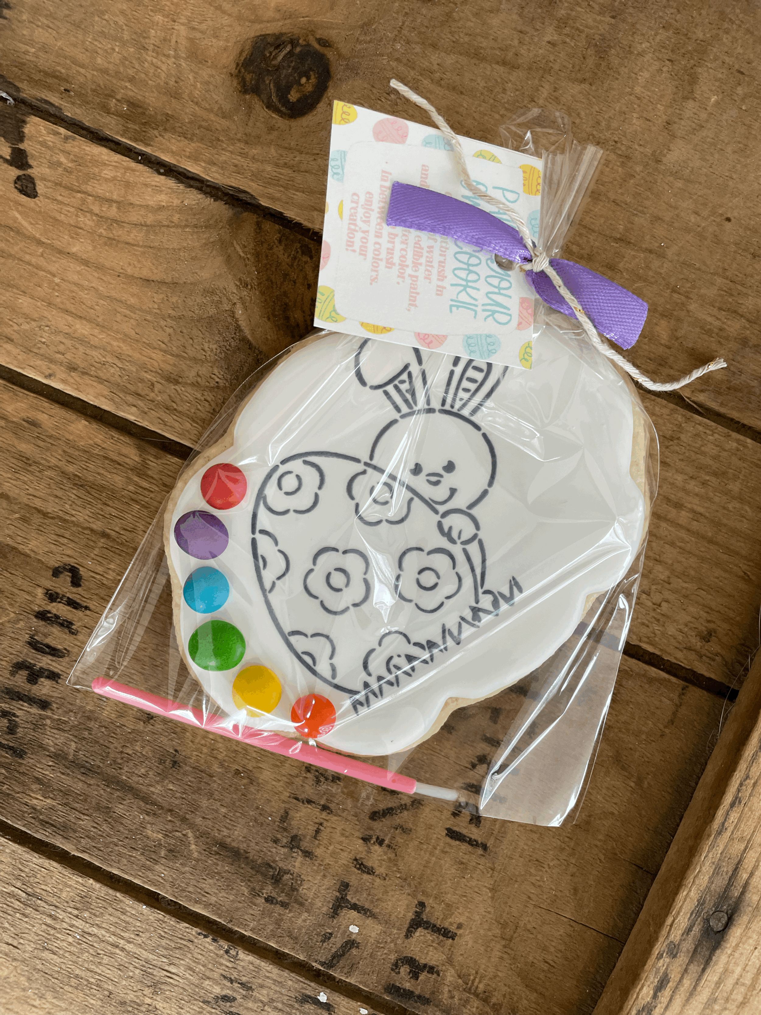 Create a masterpiece on this large sugar cookie! Paintbrush, edible paint dots and instructions included!! Choose from different designs!